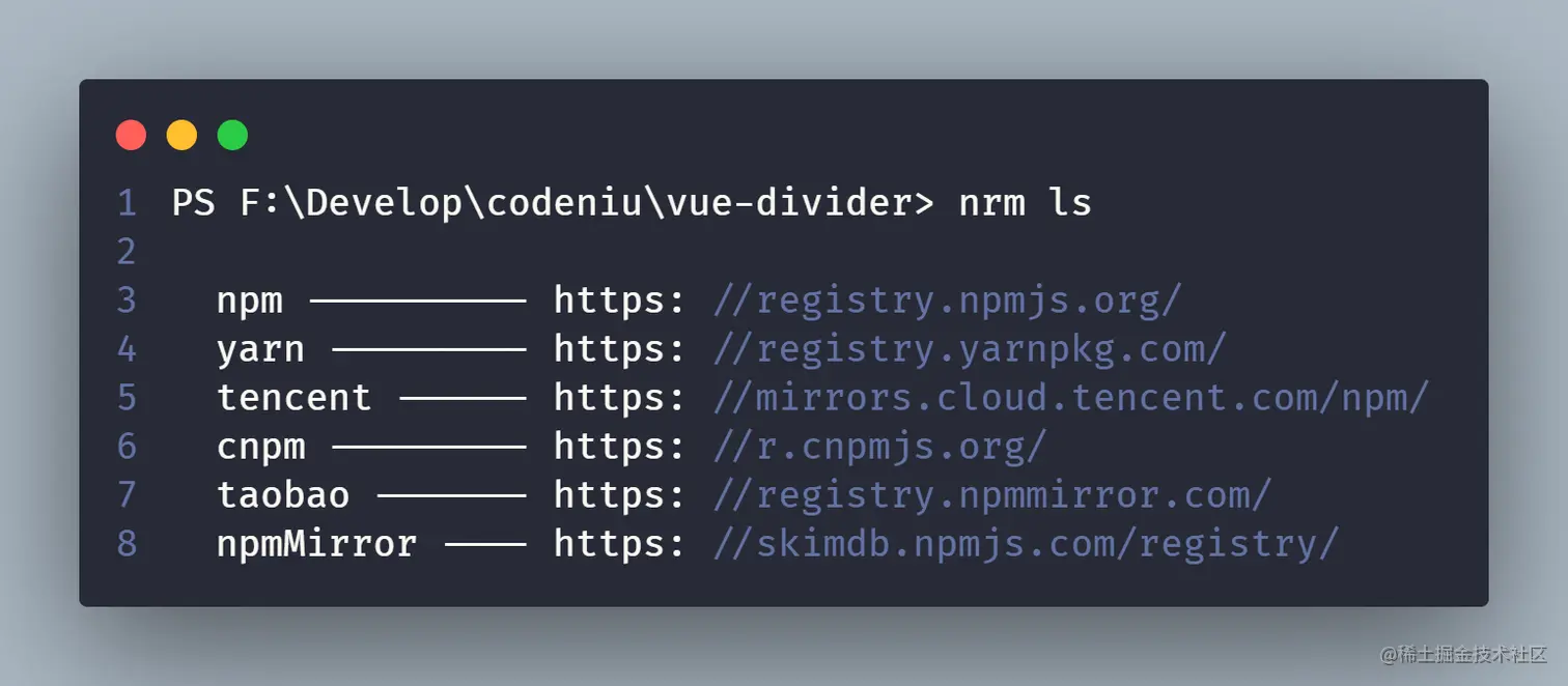 或者使用 nrm 管理 npm 源,这样可以快速的切换源, 安装 nrm