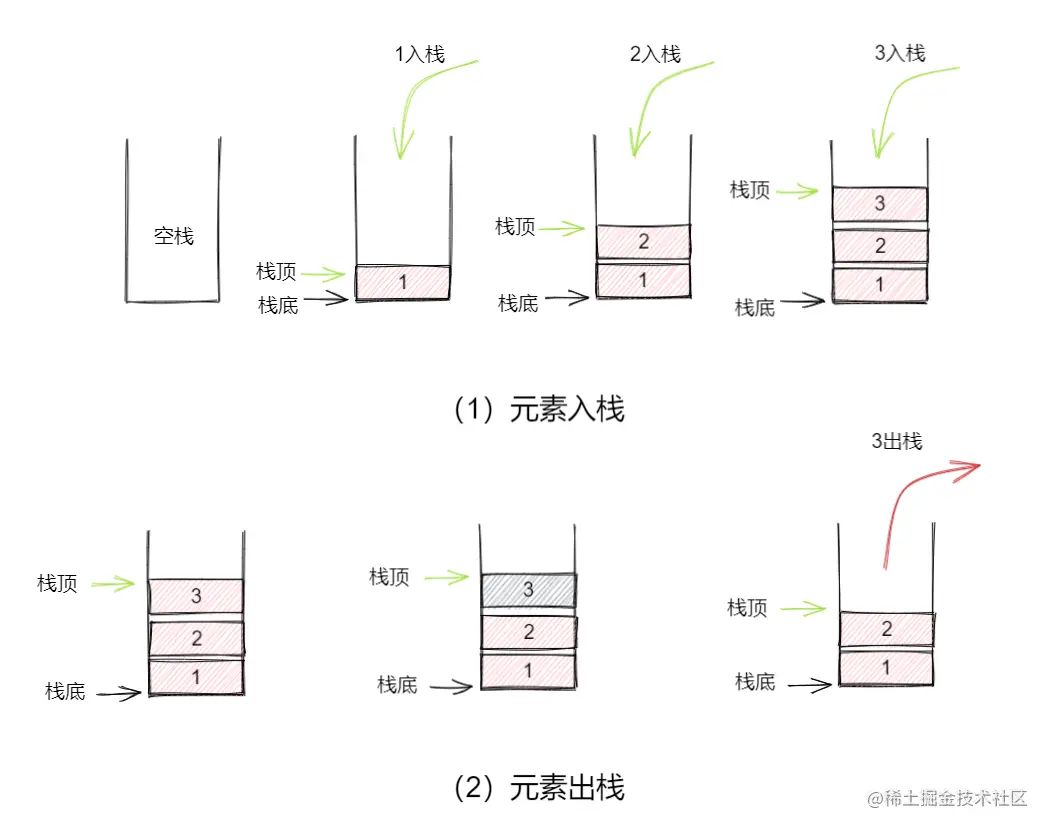 - 根据栈的定义可知,最先放入栈中元素在栈底,最后放入的元素在栈顶,而删除元素刚好相反,最后放入的元素最先删除,最先放入的元素最后删除。