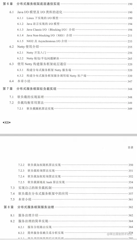 第6章围绕系统之间底层通信相关的知识点来组织,从Javal/O体系(阻塞I/0、NIO、NIO2)到Netty相关知识均做了详细介绍。最后就使用Netty实现分布式服务框架底层通信给出了代码实现。