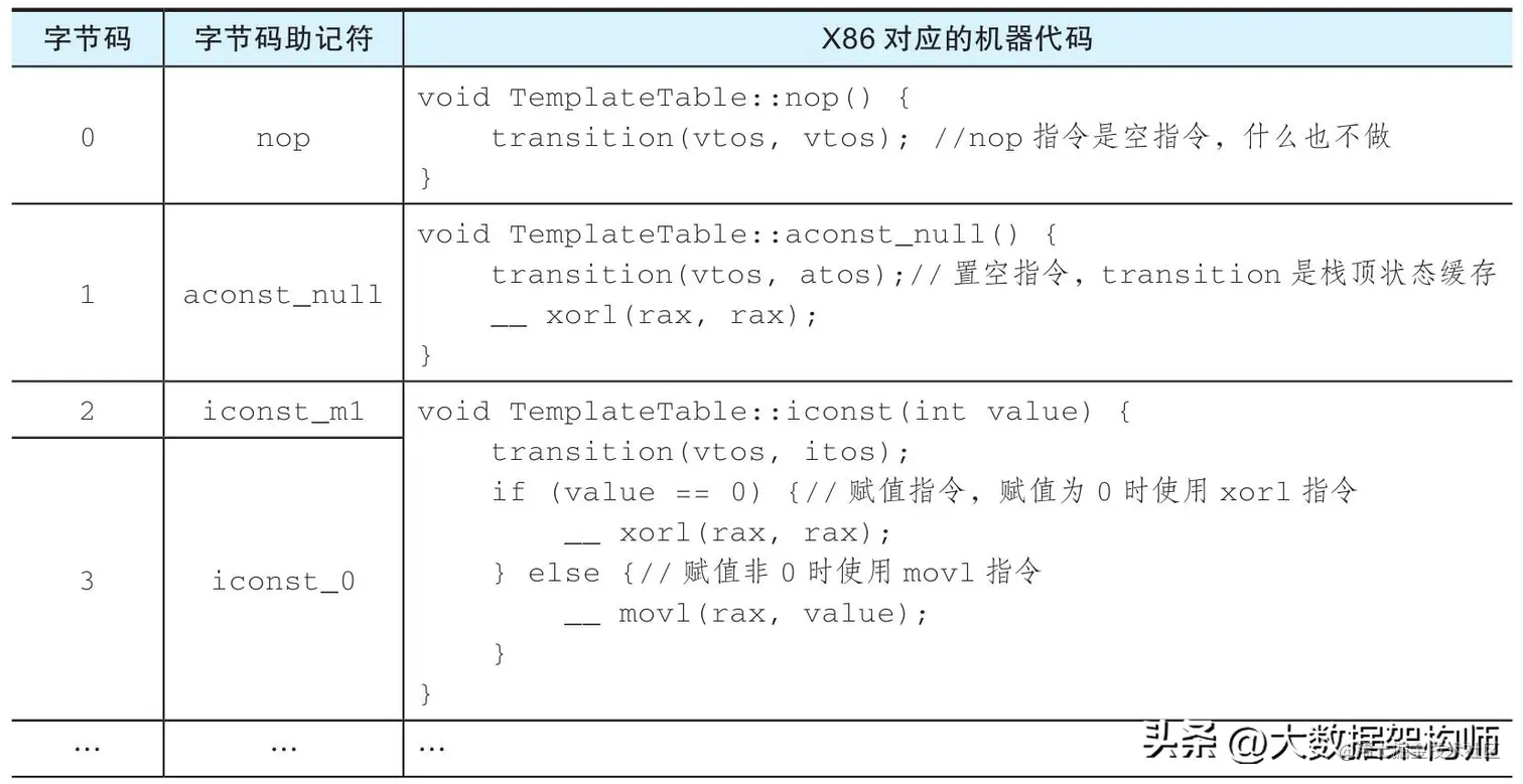 所以,可以简单地认为JVM在执行字节码时,每一个字节码都被替换成一段目标机器的代码。
