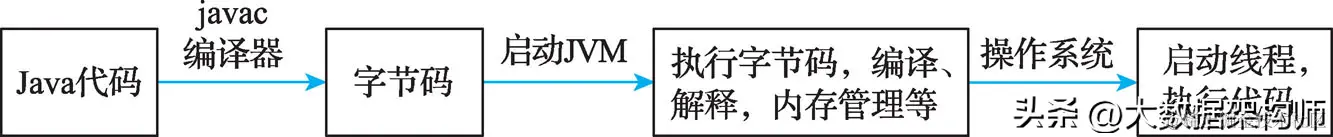 2)启动JVM(不同的系统JVM不同),JVM加载字节码,解释执行字节码。在解释执行的过程中如果发现字节码(更准确地说是字节码片段,如一个函数或者一个循环代码)执行频次高,会尝试将字节码直接编译成目标机器代码,待编译完成后使用编译优化后的机器代码替代解释执行。