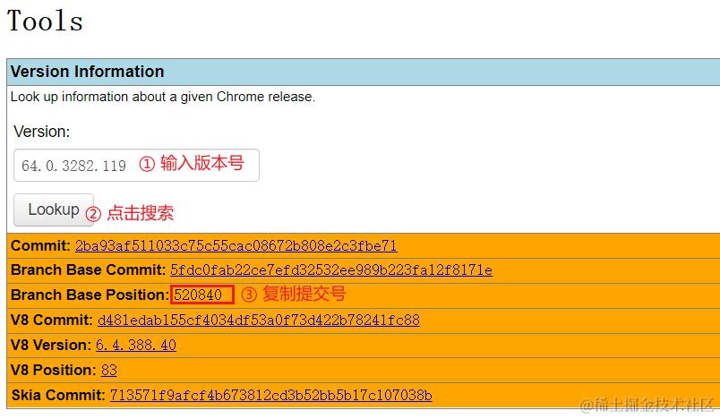 根据版本号(以 64.0.3282.119 为例)查找对应代码提交号