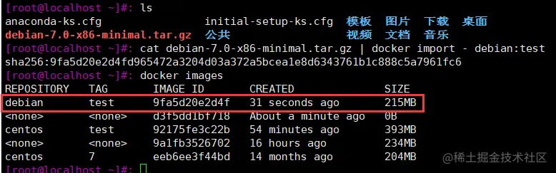 cat debian-7.0-x86-minimal.tar.gz | docker import - debian:test