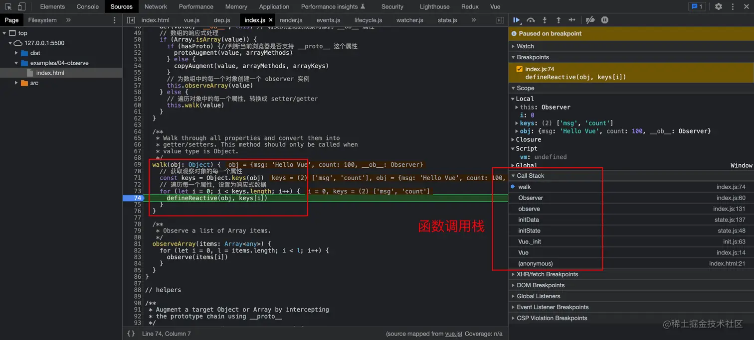 6、observe(value) 中最后实例化了 Observer 类,并且把需要响应式的数据传入