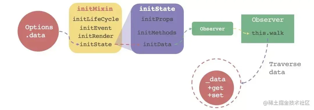 initData 方法对 options 中的 data 进行处理,主要是有两个目的