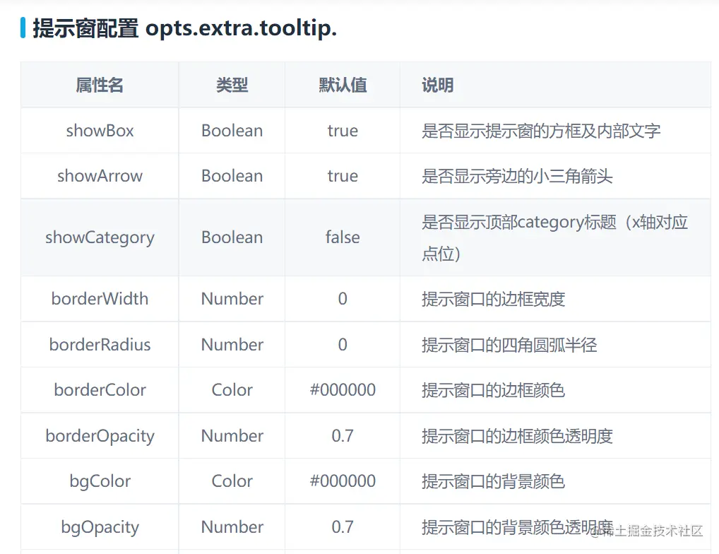 问题: 自定义提示框中内容的格式时,提示窗配置 opts.extra.tooltip中,并没有直接的配置项来更改内容和内容格式。