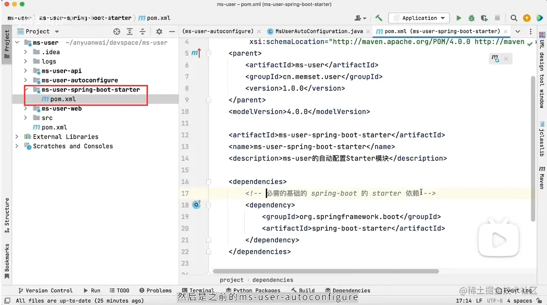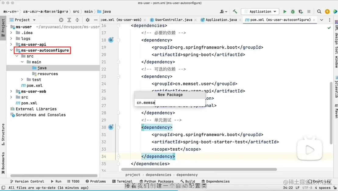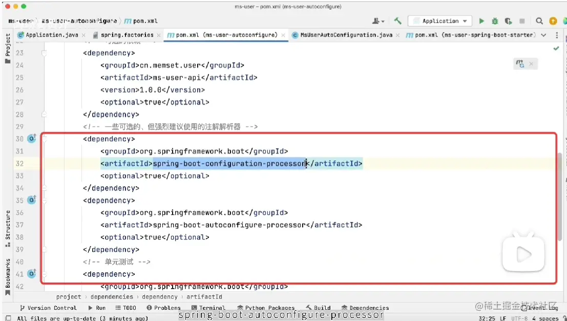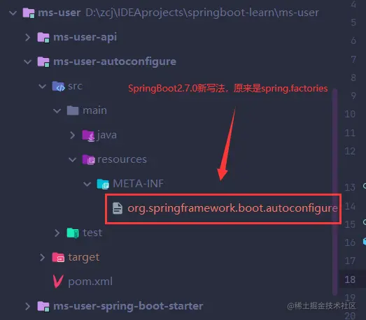 这就需要在ms-user-autoconfigure中添加自动配置文件,如下。
