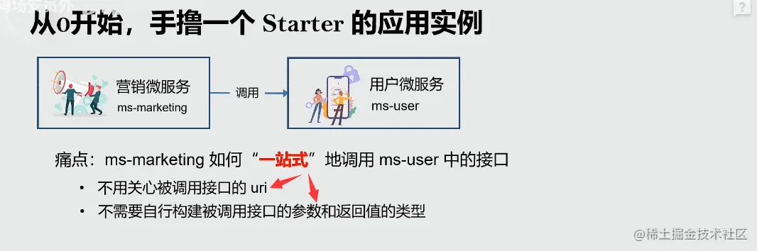 这里创建营销微服务调用用户微服务程序提供的和用户相关的服务,通常微服务程序部署在不同的主机上,然后可以通过http协议调用提供微服务的程序接口,获得相应服务(这就意味着用户微服务程序和营销微服务程序必须同时运行,这样才能够调用相应的微服务程序),这里通过OpenFeign实现。