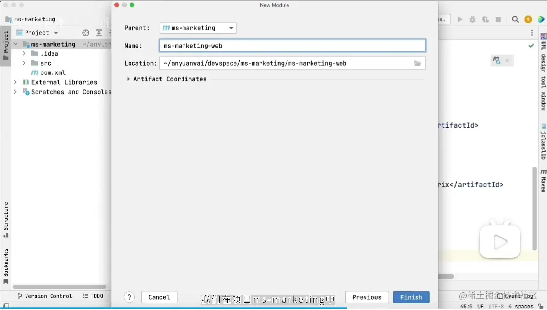 首先,新建一个营销微服务maven项目 ms-marketing,并导入相关依赖。