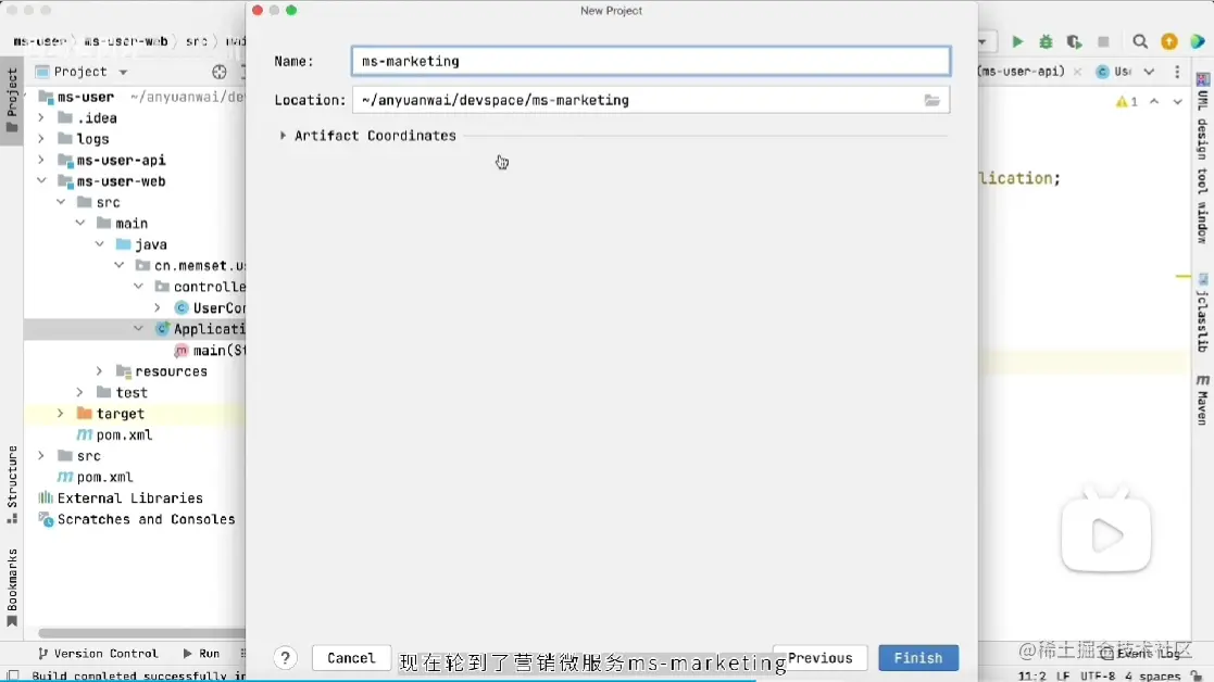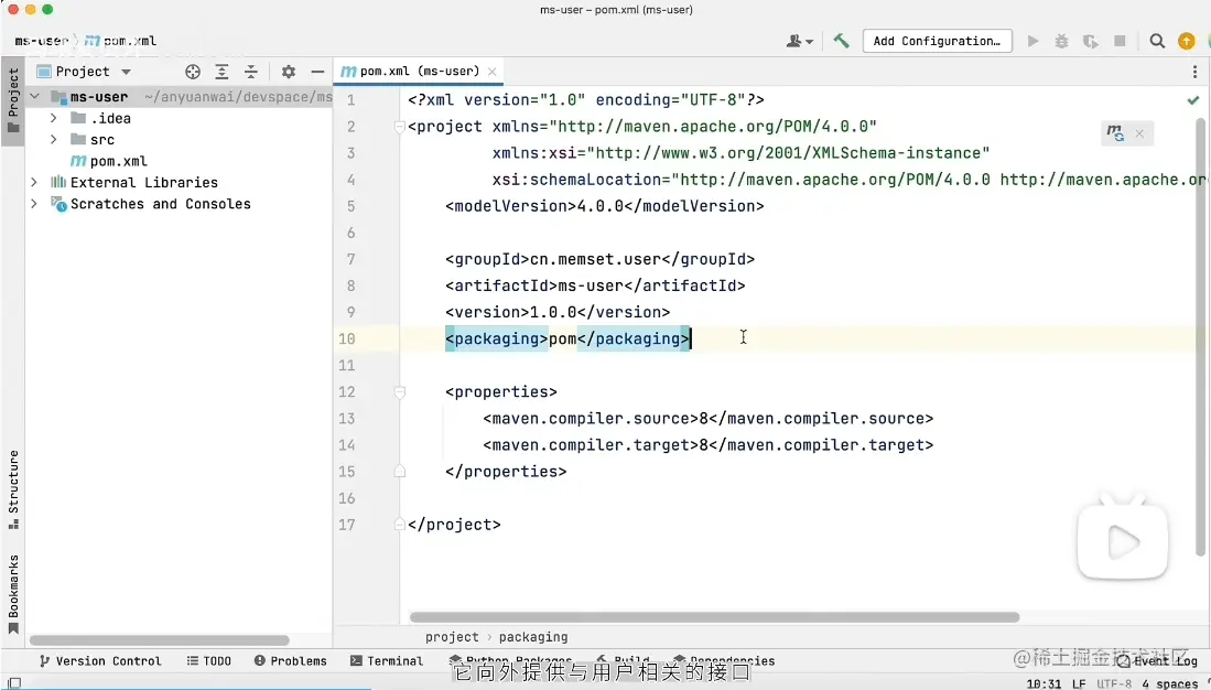 首先创建一个maven项目 ms-user ,作为用户微服务的项目,它向外提供和用户相关的接口。