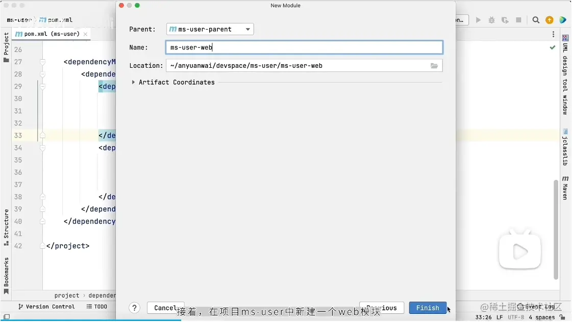 接着在项目ms-user中,新建一个模块ms-user-web,他是用户微服务的web应用,基于SpringBoot、SpringMVC、SpringCloud进行开发。