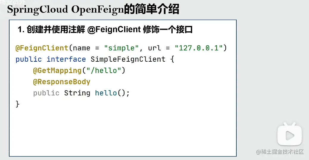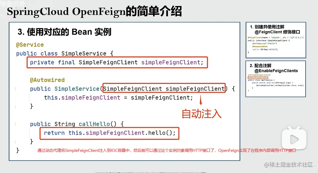 SpringCloud OpenFeign是向外提供微服务接口,实现了OpenFeign所在的微服务程序,其实就是利用动态代理加载相应的OpenFeign实现类(通常是Controller),并调用该实现类提供的http接口来完成服务调用。