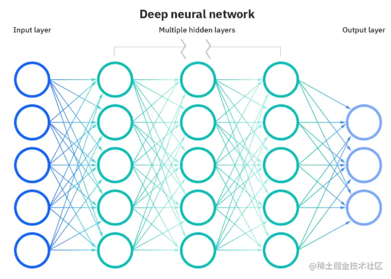 深度学习中的“深度”是指神经网络中层的深度。由三层以上(包括输入和输出)组成的神经网络可以被视为深度学习算法。 这通常使用下图表示: