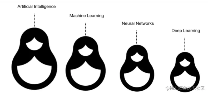 或许思考人工智能、机器学习、神经网络和深度学习的最简单方法就是将它们想象成俄罗斯套娃。 每个本质上都是前项的组成部分。