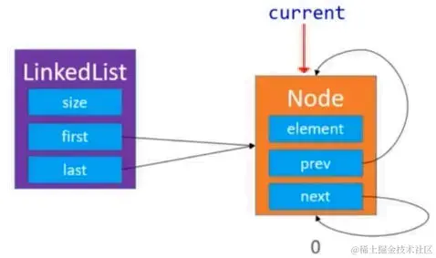 - E next():让 current 往后走一步,也就是 current = current.next