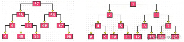 - 满二叉树一定是完全二叉树,完全二叉树不一定是满二叉树