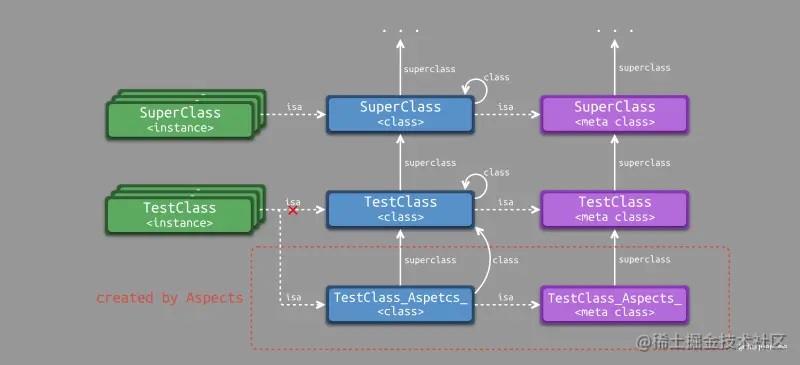 AspectsContainer。 - 创建动态类:只有在 hook 实例对象的实例方法时,才会创建动态类。
