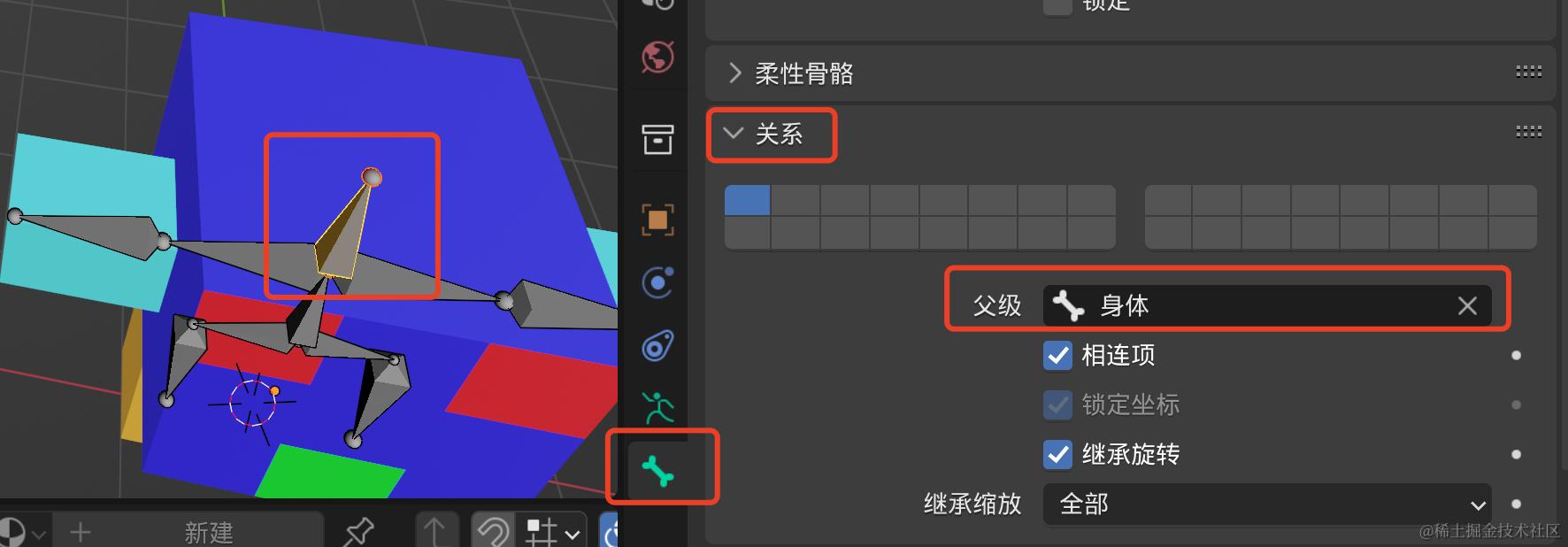 如果添加骨骼的过程中,父子关系出错了,可以在编辑模式下进行调整