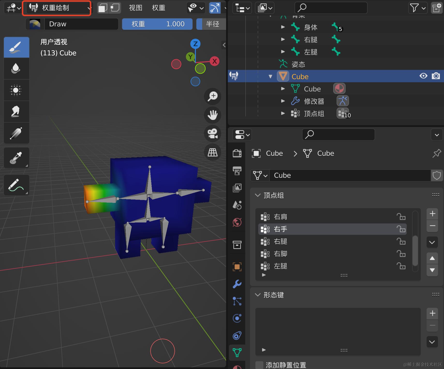 物体数据属性里面的顶点组里面