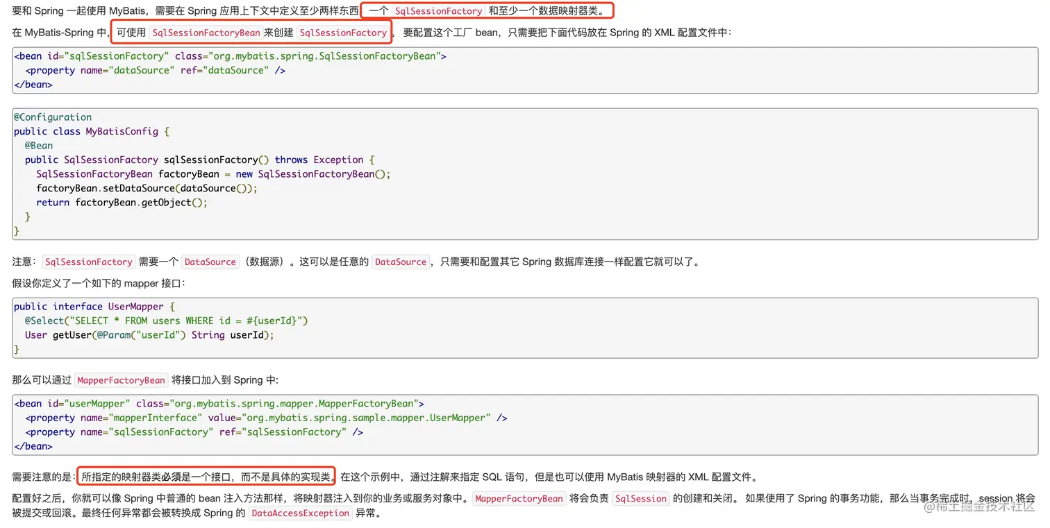 - 而在 MyBatis-Spring 中,则使用 SqlSessionFactoryBean 来创建