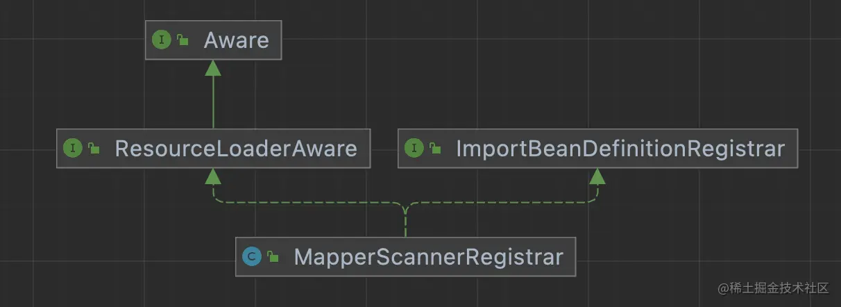 public class MapperScannerRegistrar implements ImportBeanDefinitionRegistrar, ResourceLoaderAware {