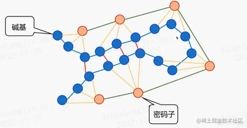 从图中可以看到,绿色节点是碱基,黄色节点是密码子。