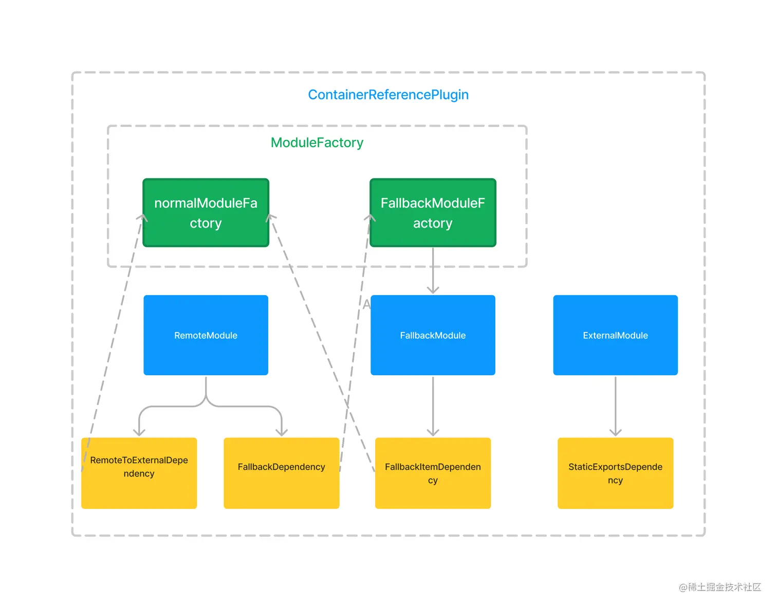 - ContainerReferencePlugin 依赖了 ExternalsPlugin, 或者说 remotes 配置的本质就是被当做 externals 配置处理,所以在构建的时候不需要经历正常的模块创建流程;