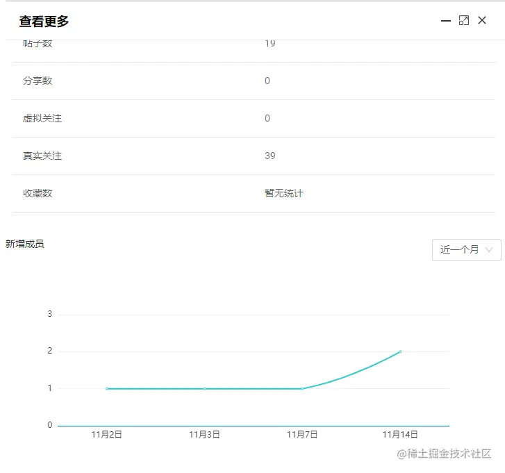 管理后台支持查看版块内新增成员、 新增内容、新增浏览的数据走势