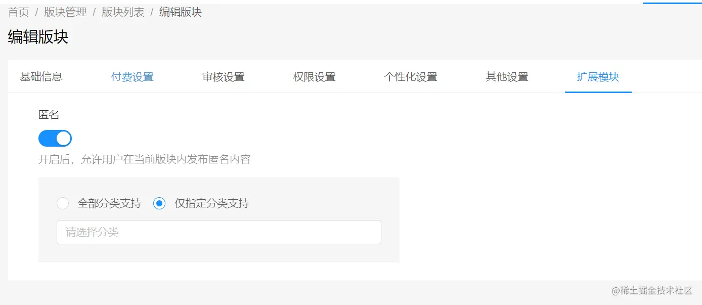匿名功能可针对版块或版块分类单独开启可设置部分版块为匿名版块,增加社区不同的玩法。同时也可仅支持某版块的某分类单独设置匿名。