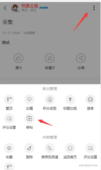 11. 用户端版主/超级版主新增了迁移内容至其他版块的功能;