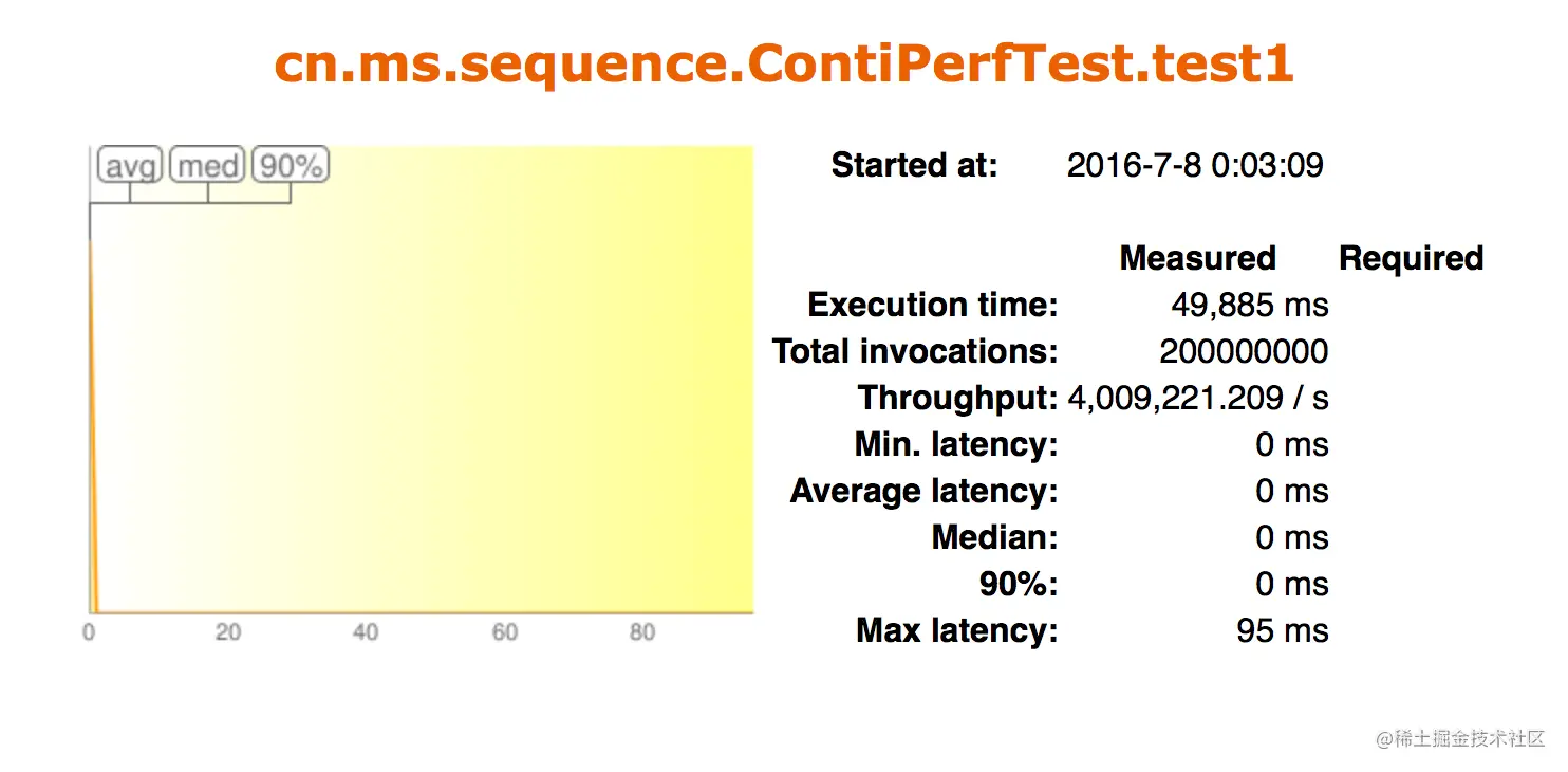 从官方的性能测试数据来看,sequence每秒可以生成最多418万个有序的ID,即TPS=400w/s,已经基本满足绝大部分的业务场景。