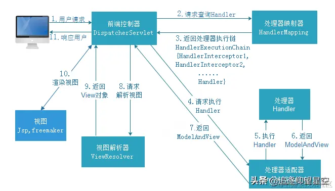 - 10、DispatcherServlet根据视图解析器解析的视图结果,调用具体的视图,进行试图渲染