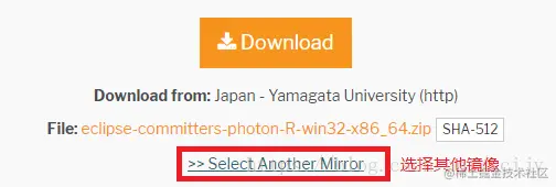 3.之后我们来到如下界面,默认下载地址是日本的一所大学,我们点击Select Another Mirror选择其他地区的镜像,至于为何,选择距我们较近的地区,下载速度较快。