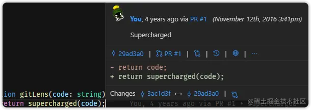 GitLens 从名字就能知道它是干嘛的,VSCode 内置 Git 帮助加上这个插件交互体验是优于 Webstorm 的。
