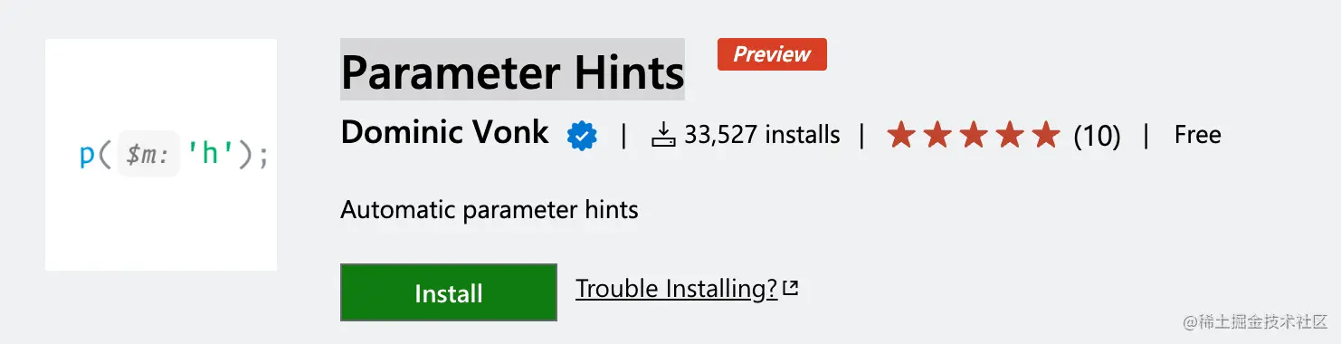 Parameter Hints 会展示函数的参数名称。