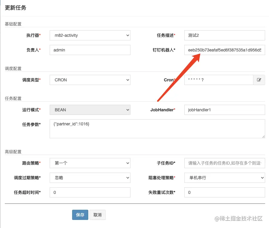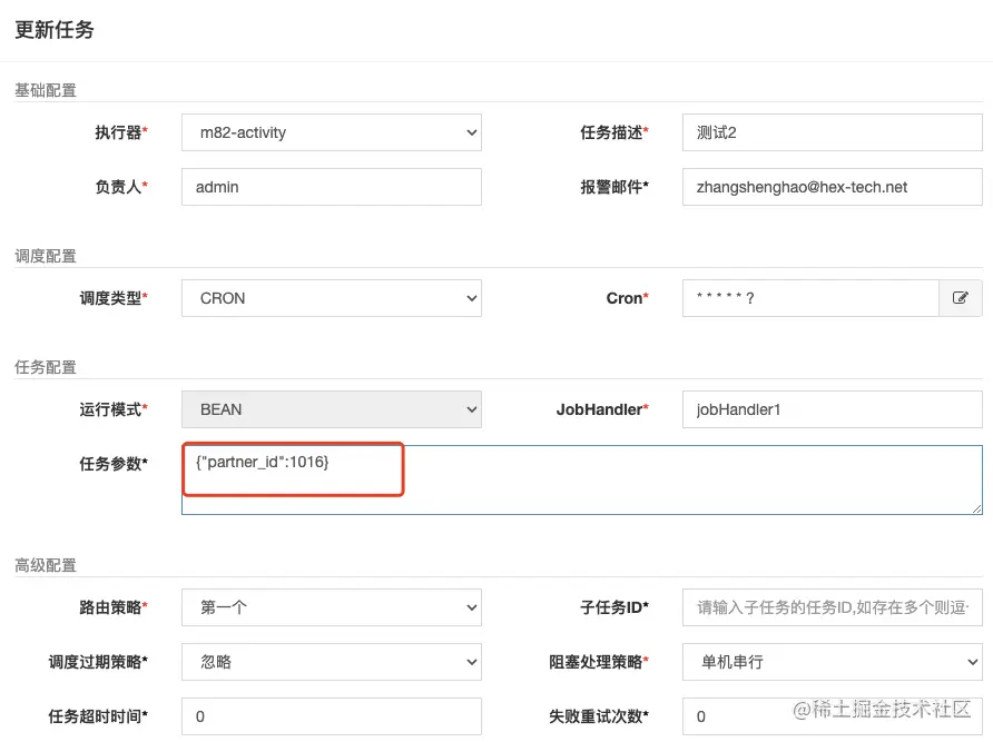 - 在任务处填写参数