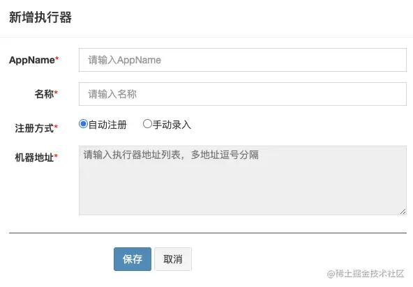 服务配置好调度中心的地址后,需要手动在执行器管理页面创建执行器,才会自动注入并发现服务地址