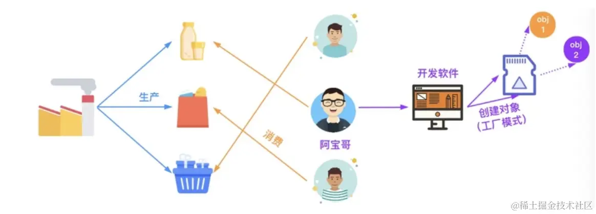 其就像工厂一样重复的产生类似的产品,工厂模式只需要我们传入正确的参数,就能生产类似的对象。根据参数的不同创建不同对象。