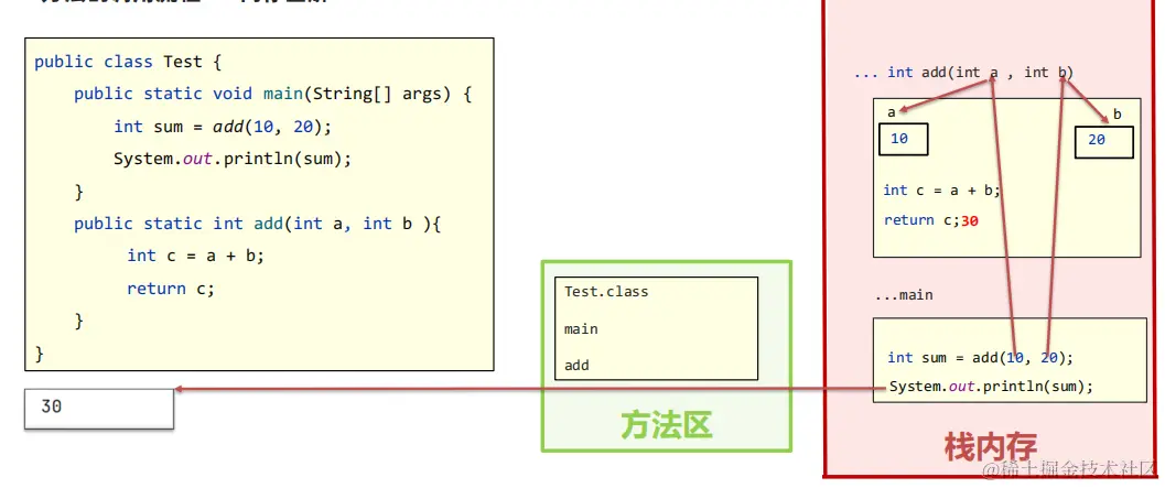 示例:使用方法对2个整数求和并返回。