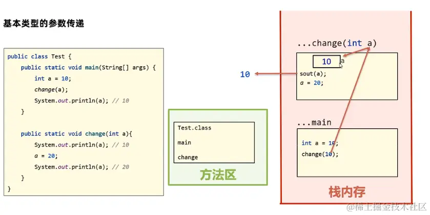 在传输实参给方法的形参的时候,并不是传输实参变量本身, 而是传输实参变量中存储的值,这