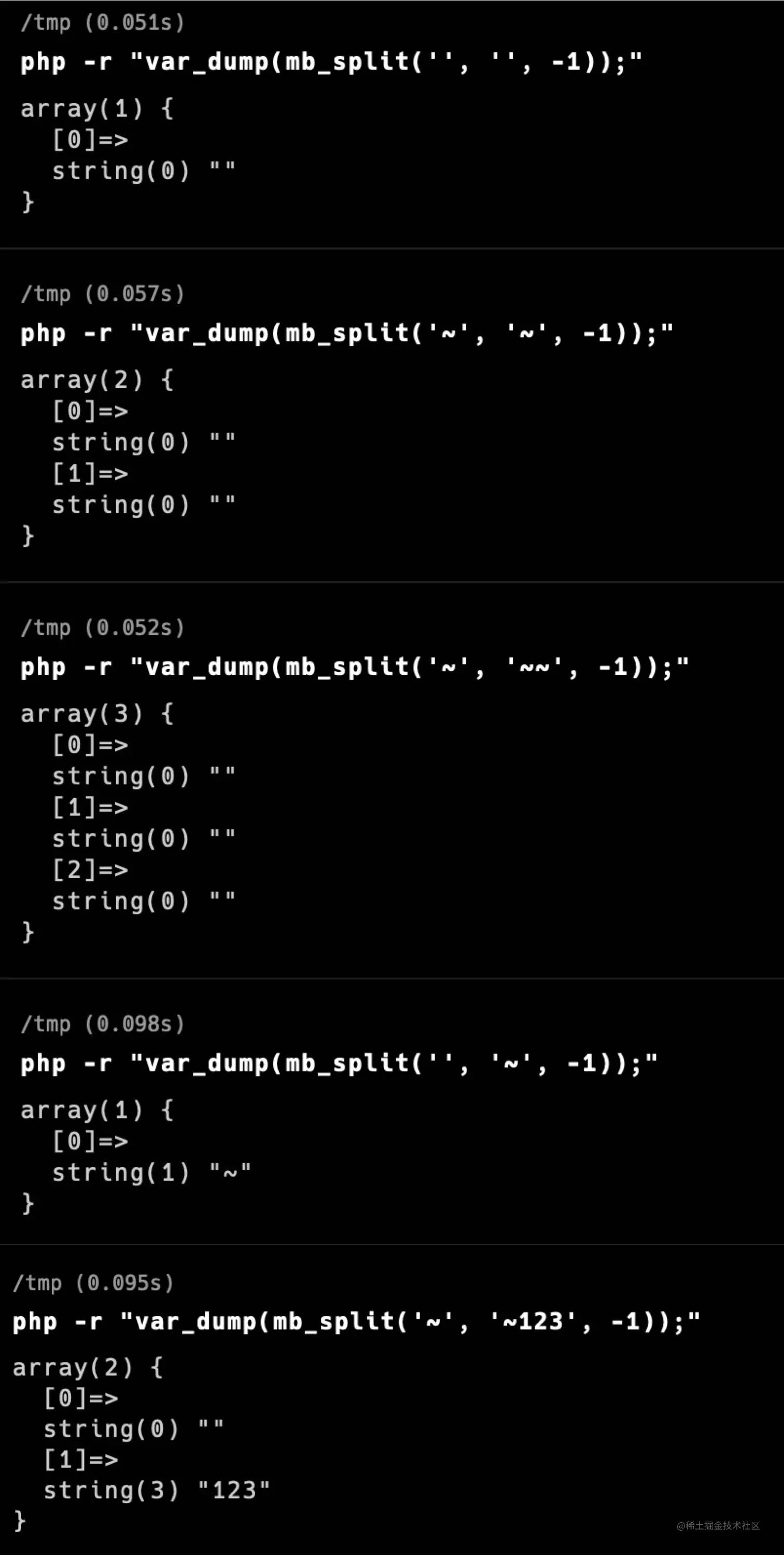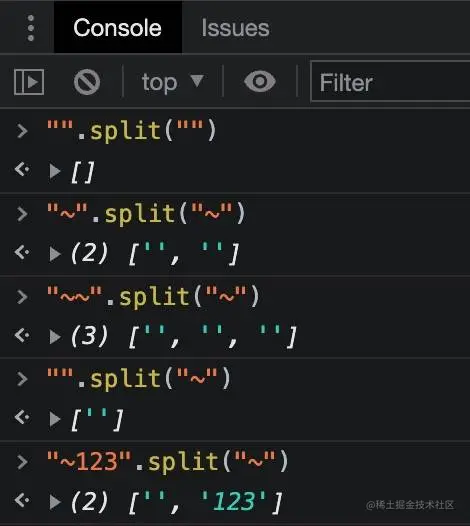 代码 "~".split("~") 返回的是 空数组,与在 Java 中我们遇到的问题如出一辙。