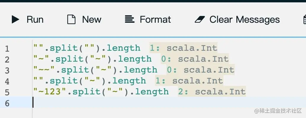 然后,我又尝试了 Scala,发现在 Scala 中, split 的行为有些不一样了。