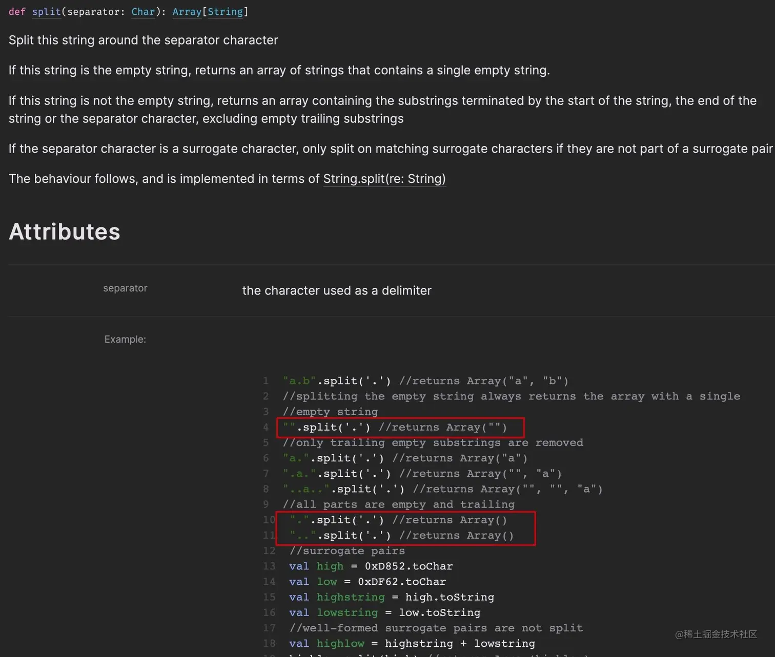 问题很简单,我们对一个字符串执行 split 方法之后,以过往其它编程语言(Go、PHP、Javascript、Dart 等)的使用经验来看,即使字符串为空,即使没有匹配到分隔符,在返回值数组中也会包含一个当前字符串的值。但是这里却抛出了 ArrayIndexOutOfBoundsException,难道 split 方法的返回值可能为空数组?