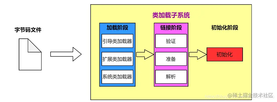 - 这时候我们就需要解决一个问题:我们CPU只和内存打交道,我们的数据(类文件)放在硬盘上,我们就需要将我们的类文件从硬盘加载到内容中,而负责这项工作的就是JVM的类加载的子模块