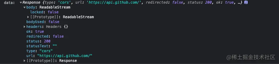 我们直接通过请求一个api看一下response返回以及我们最终拿到的数据