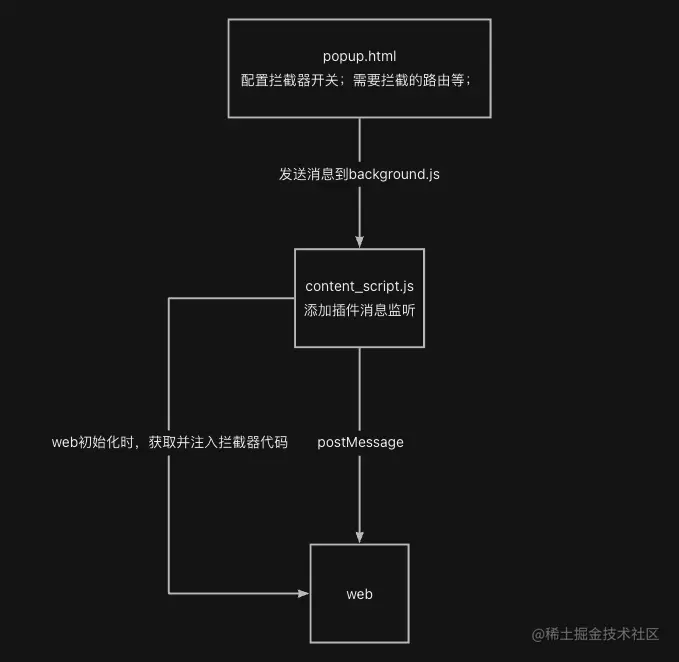 知道了拦截原理,但是如果现在要通过请求拦截对某接口进行mock,还是要在项目文件上面进行编码,那么我们通过编写浏览器插件,把我们的拦截器的代码注入到指定页面那不就可以了吗?