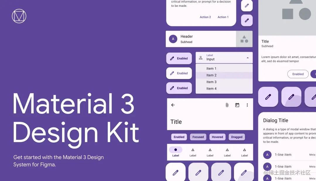 - Material 3 Design Kit - 这个是 Google 官方设计组件库,想做原生的 Android 产品的话直接在这里用控件设计就可以,方便快捷,又好看。建议独立开发者直接拿来用。在这里看文档介绍。