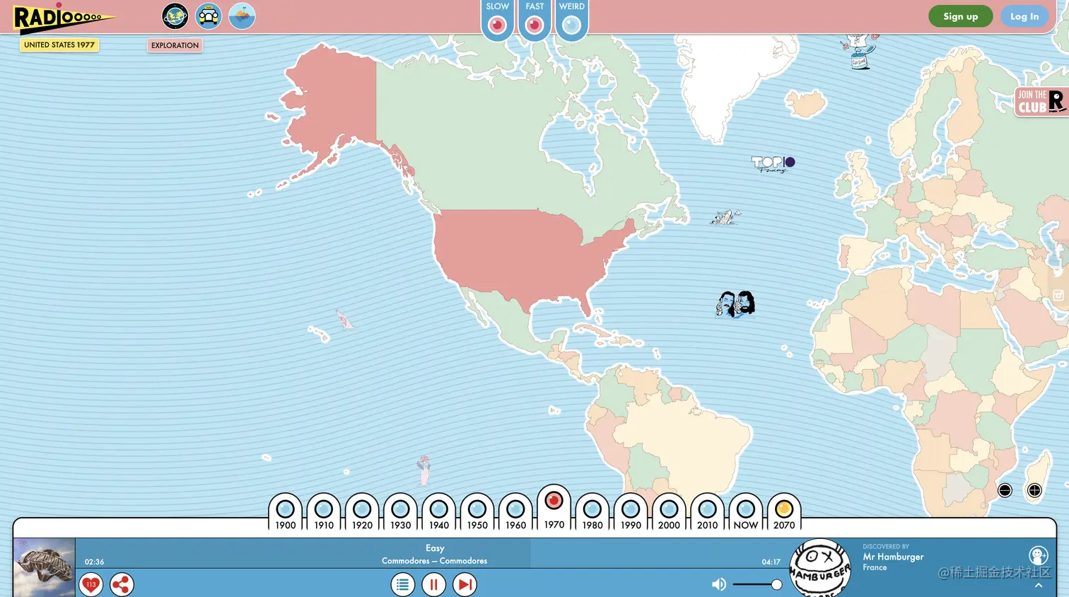 - Radiooooo - 这个网站非常有意思,可以听到不同国家不同时代的音乐,选择国家和年代就可以了。是一个不错的音乐电台,很有意思。