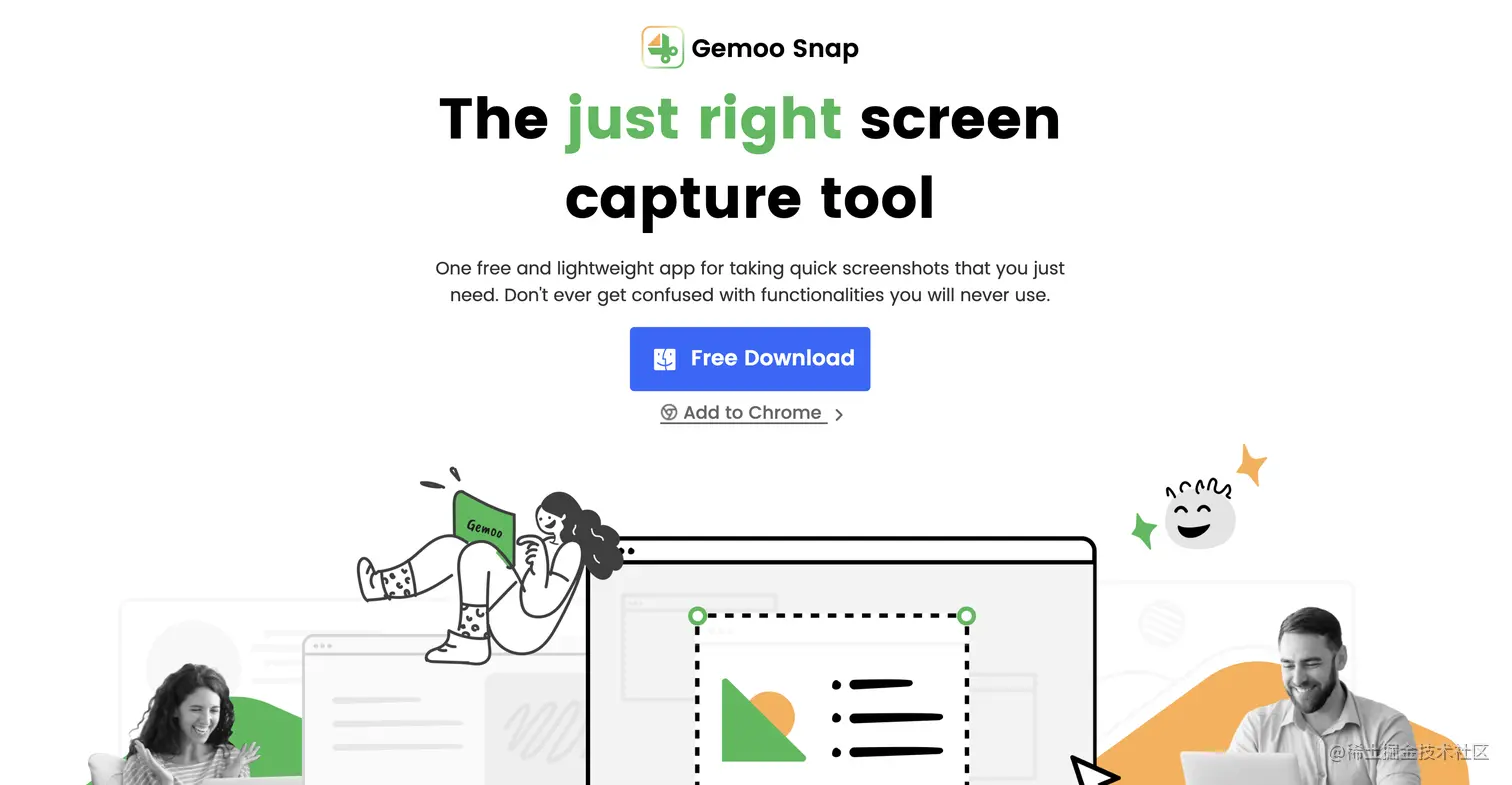 - Gemoo Snap - 由开发者团队成员 @Naomi_Zhaoge 自荐,这是一个免费的6合1截图软件;通过它可以帮助设计师们节约日常工作中用于截图任务的时间。支持window及macOS系统,同时也用户Chrome插件及web启动。这个项目的团队是 Base 在美国的中国团队,团队基本都是留学生组成,看上去确实很用心在做了,这类软件今年出现了非常多,但是都有一些自己的特点。期待团队以后开发更多好用的产品。