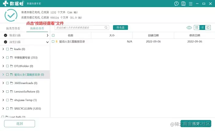 步骤2: 扫描结束,该选择文件所在的位置了。可以通过【类型】来查看文件格式和类型,这样会更直观,也符合大多数人的阅读习惯。当然,你也可以选择【路径】查看,如下图展示。